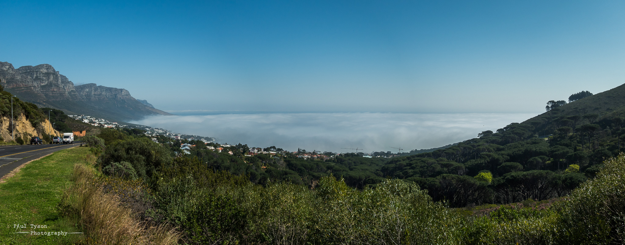 DSC01252-Pano Published September 6, 2016 at 2048 × 804 in The Most Beautiful City in the World? ← Previous Next → Looking down on Camps Bay early morning as Sea Mist completely shrouds the bay