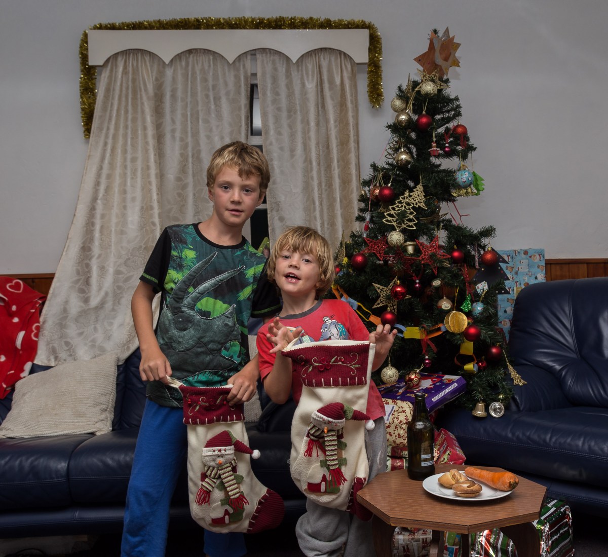 _MG_0147 Published January 2, 2016 at 2362 × 2164 Christmas Eve, ready for bed. Farther Christmas was sensibly left a beer this year, instead of Milk, I approved of this choice by the boys.