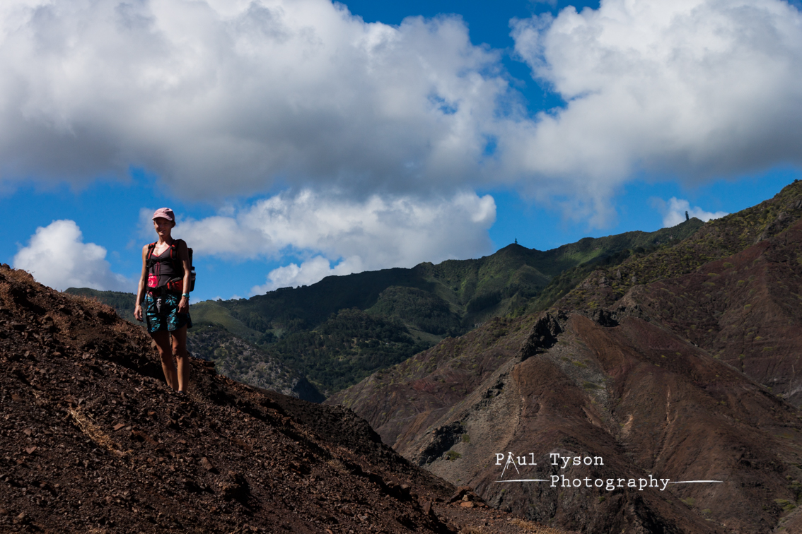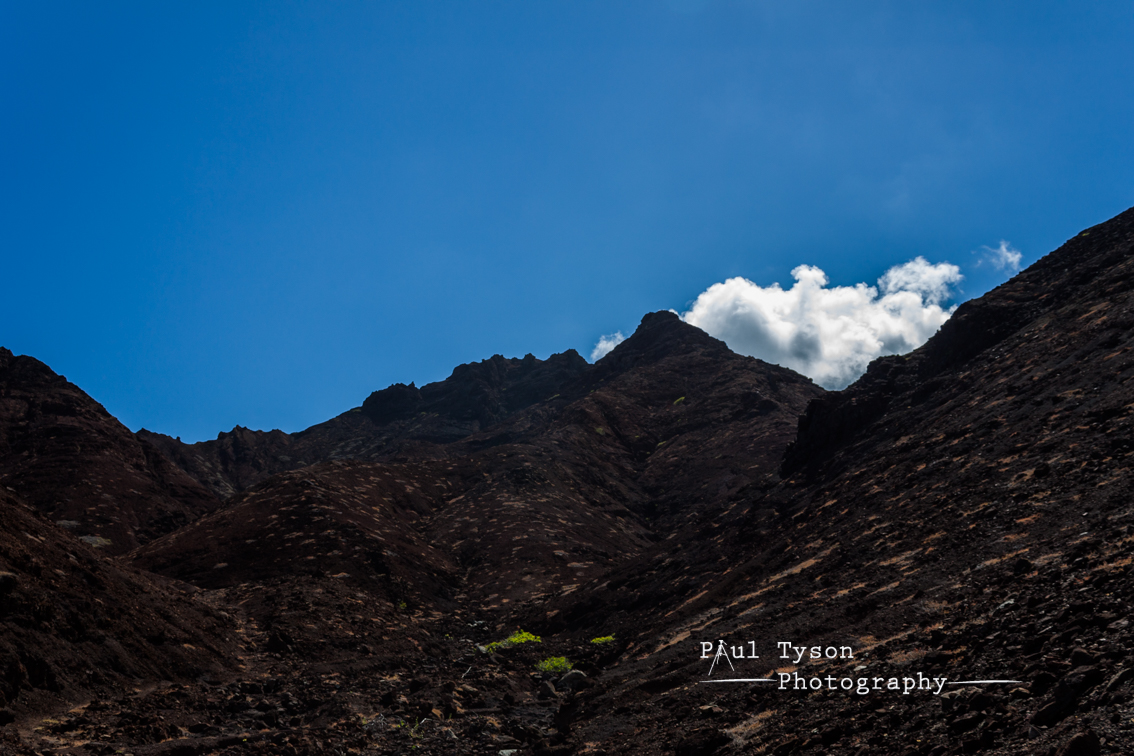 The walk to Lots Wife ponds features in the post box walks, a series of tourist trails across the Island, graded for their difficulty in both effort and technical difficulty. Having tried some low grade walks with the boys, Lots Wife Ponds sits at the upper end of the scale, with a grade of 6/10 for effort, and 8/10 for technical difficulty. And such we set out, across the wide flat dry river bed of broad gut and up the zig zagging path of and old cart road across the steep sided scree slopes beyond. Broad Gut, the Gates of Chaos, Frightus Rock and other aptly named peaks, ridges, valleys and gorges form the Sandy Bay National Park, an area that inspires awe as the Mars like landscape, scarred into volcanic rocks rises in reds, oranges and purples to the lush green slopes of High and Diana Peaks and the central ridge. Formed during volcanic eruptions some 14 million years ago this now dry and barren surface was once green with trees and plants found no-where else on earth. The arrival of goats on the Island in the late 1500s led to severe deforestation and hundreds of years of rain and driving Atlantic winds have scoured sharp ridges like daggers across the unprotected rock, forming a Lord of the Rings landscape.