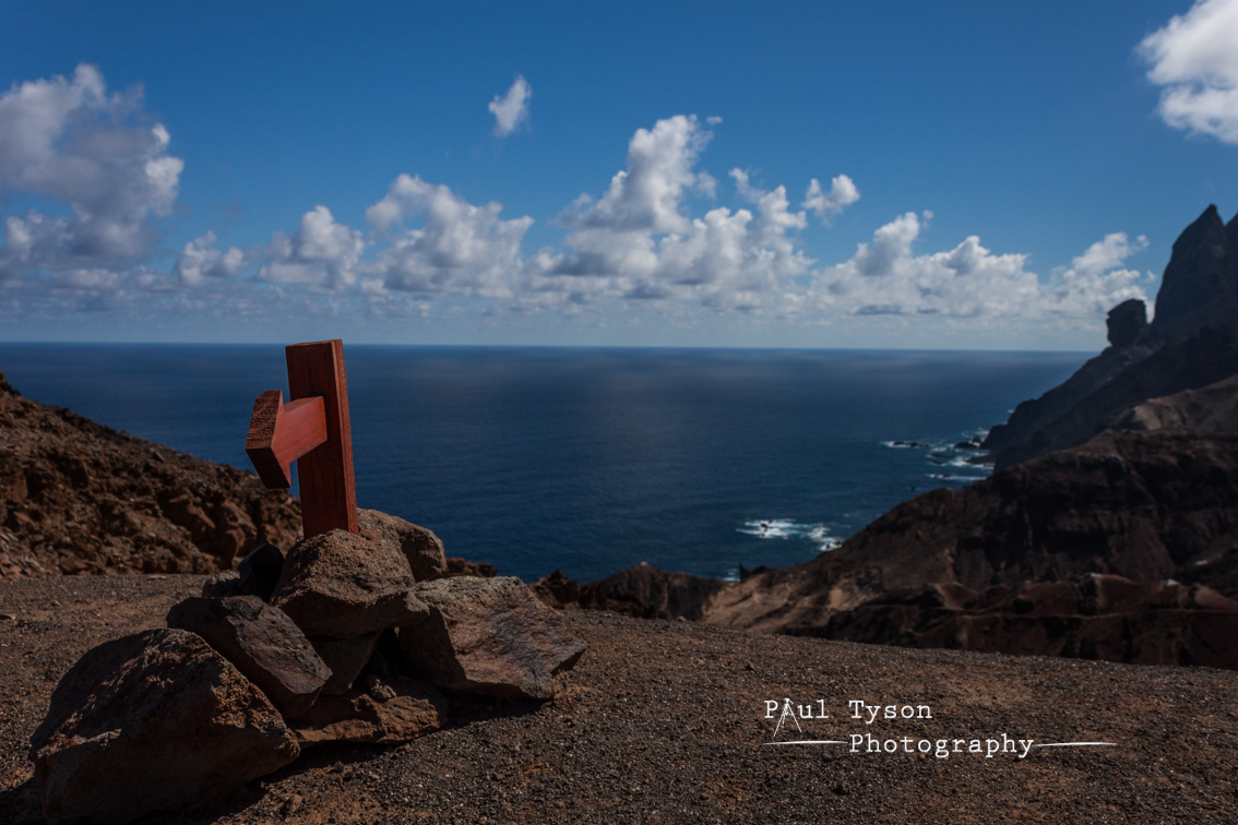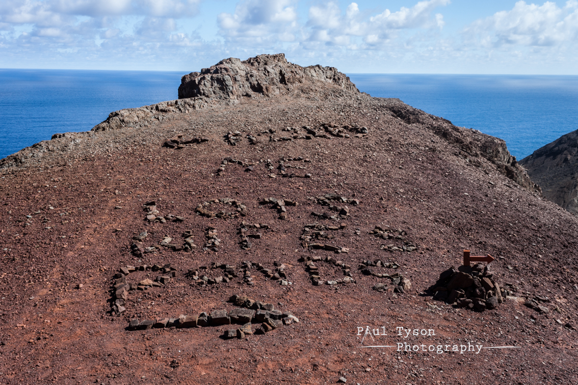 The path is well marked from the feet of other intrepid explorers, and of countless years of fishermen and donkeys and leads us upward, winding across steep valley sides ever on to a ridge we can see in the distance. As other parents will know, when you have children and have the opportunity to relieve yourselves of them for a day you have to take your chances, and as such we pressed on in the less than ideal conditions. Dry and extremely hot, the winds blowing up from the blue waves below us provided welcome rest bite from the burning afternoon tropical sun. As our car disappeared into the distance and the blue waters of Sandy Bay became obscured by rocks of red and orange we finally arrived at our highest point, a ridge providing extraordinary views of Broad Gut behind and the rocky cliffs of Asses Ears, Gorrila’s Head, Man o’War Roost and of course Lots Wife loomed high above us.